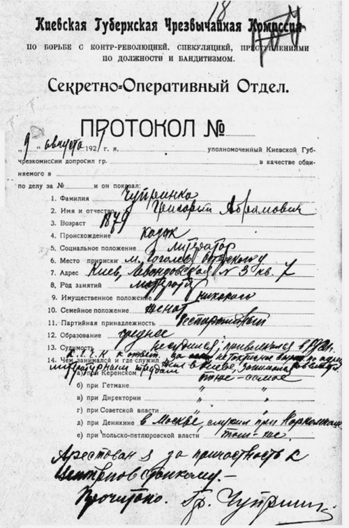 Замітка про арешт Григорія Чупринки у газеті «Рада» (Четвер, 5 вересня (18 вересня) 1919 року. № 3 (30). С. 3)